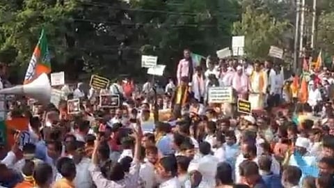 जळगाव : अतिवृष्टीमुळे शेतकऱ्यांचे मोठ्या प्रमाणात नुकसान झाले. मात्र त्यांना अद्यापही भरपाई मिळालेली नाही. हा प्रश्न घेवून भाजपने राज्य शासनाच्या निषेधार्थ जिल्हाधिकारी कार्यालयावर शेतकरी शेतकरी जनआक्रोश मोर्चा काढला. राज्य शासनाविरोधात प्रचंड घोषणबाजी करत भाजपने परिसर दणाणून सोडला. (jalgaon BJP's grand march for farmers protested against the state government)