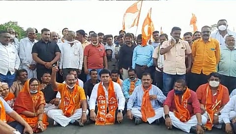 एरंडोल पंचायत समितीच्या कार्यालयापासून महामार्गापर्यंत मोर्चा काढण्यात आला. त्यानंतर शिवसैनिकांनी महार्गावर ठिय्या मांडत भाजपच्या विरोधात जोरदार घोषणाबाजी केली. भाजपची भूमिका मराठा आणि ओबीसी आरक्षणाच्या विरोधात आहे. हेच भाजप आमदारांच्या विधानसभेतील भूमिकेवरून स्पष्ट झाले आहे, असा आरोप यावेळी बोलताना डॉ. हर्षल माने यांनी केला.