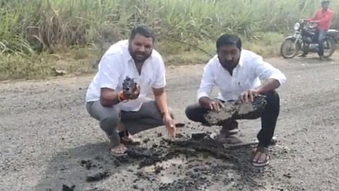 हाताने तयार झालेला डांबरी रस्ता उकरून दाखवत या रस्त्याची संपूर्ण पोलखोल उघडी केलीय. या पुढे शिवसेना या बोगस रस्त्याचे काम खपवून घेणार नसल्याचं म्हणत या संपूर्ण कामाची चौकशी करण्याची मागणी केलीय. जो पर्यंत या बोगस काम करणाऱ्या तन्वी कन्ट्रक्शन या कंपनीवर कारवाई केली जात नाही तो पर्यंत या रस्त्याचं काम होऊ देणार नसल्याची भूमिका मरकड व बोबडे यांनी घेतली आहे.