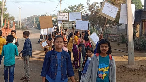 जालना : अंबड तालुक्यातील भांबेरी गावातील (Jalna News) जिल्हा परिषदेच्या शाळेच्या शिक्षकाची बदली झाली आहे. हे कळताच शाळेतील विद्यार्थ्यांनी (Student) चक्क हातात फलक घेऊन जोरदार घोषणाबाजी करत बदली रद्दसाठी गावातच प्रभात फेरी काढत मोर्च्या काढला. (Tajya Batmya)