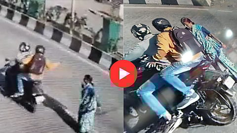 Junnar Crime News: जुन्नर शहरातील मुख्य रस्त्यावर दुचाकी वरुन आलेल्या तीन तरुणांनी भर रस्त्यात महिलेच्या अंगावरील सोन्याचे दागिने धुम स्टाईलने लंपास केल्याचा धक्कादायक प्रकार घडला आहे. दुचाकीवरुन आलेल्या तिघांनी पाळत ठेवून महिलेच्या गळ्यातील दागिने ओरबाडून पळाल्याची ही घटना सीसीटीव्हीमध्ये कैद झाली आहे. या धक्कादायक प्रकारानंतर परिसरात खळबळ माजली असून नागरिकांमध्ये भितीचे वातावरण पसरले आहे. (Junnar News)