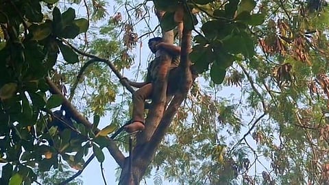 हा कर्मचारी आज (साेमवार) पहाटेपासून झाडावर चढून बसला आहे. मी आत्महत्या केल्याने माझे इतर सहकाऱ्यांच्या प्रश्न सुटतील असे म्हणत कर्मचारी झाडावर चढून बसला असून येथे या कर्मचाऱ्यांच्या नातेवाईकांसह कर्मचाऱ्यांनी टाहो फोडण्यास सुरुवात केली.