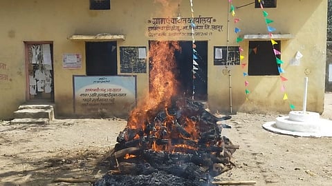 लातुर : गेल्या २० वर्षापासून मागणी करूनही स्मशानभूमीला शासन जागा देत नाही. यामुळे वैतागलेल्या लातुर जिल्ह्यातील हणमंतवाडी (ता. निलंगा) येथील ग्रामस्थांनी मयत महिलेचा अंत्यविधी (Funeral) गावातील चौकात ग्रामपंचायत (Gram Panchayat) समोरच केला. (latur news Funeral in front of the hanmantwadi Gram Panchayat on the decision of the village)