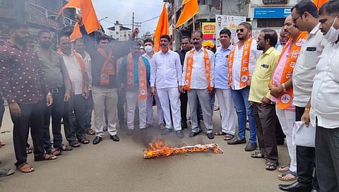 यावेळी आंदोलनकर्त्यांनी राणे यांच्या फ्लेक्सला जोडे मारत फ्लेक्सही जाळला तसेच लोणावळा शहर पोलीस ठाण्यात शहरप्रमुख बाळासाहेब फाटक यांनी फिर्याद दाखल केली आहे. दरम्यान, शिवसैनिकांनी नारायण राणे यांच्या विरोधात घोषणाबाजी केली. तसेच मुख्यमंत्री या संविधानिक पदावर असलेले उद्धव ठाकरे यांच्या विषयी असभ्य भाषा वापरणारे नारायण राणे यांच्यावर देशद्रोहाचा गुन्हा दाखल करा असे निवेदन देखील शहर पोलिसांना दिले आहे.
