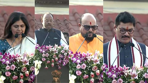मुंबई : महायुती सरकारचा शपथविधी सोहळा नागपूरच्या राजभवनात पार पडला. या सोहळ्याला महायुतीच्या जवळपास सर्व आमदारांनी हजेरी लावली. महायुती सरकारचा शपथविधी सोहळा मोठ्या दिमाखात पार पडला. या सरकारच्या मंत्रिमंडळात नव्या चेहऱ्यांना संधी मिळाली. तर घराणेशाहीतील १३ नेत्यांना स्थान मिळालं. विधानपरिषदेतील एकमेव आमदाराने मंत्रिपदाची शपथ घेतली. तर इतर सर्व मंत्री हे विधानसभा आमदार आहेत. महायुती सरकारचे सर्व मंत्री एकूण ४३ खात्यांचा कार्यभार सांभाळणार आहे.