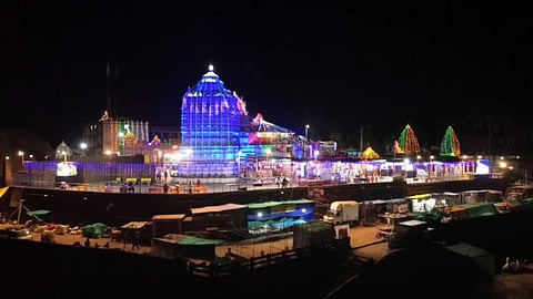 महाशिवरात्री निमित्त नाशिक येथील त्र्यंबकेश्वर मंदिराला आकर्षक विद्युत रोषणाईची सजावट करण्यात आली आहे. पहाटे ४ वाजता विधिवत पूजेनंतर मंदिर भाविकांना दर्शनासाठी खुलं करण्यात आलंय. त्र्यंबकेश्वराच्या दर्शनासाठी भाविकांनी मोठी गर्दी केली आहे.