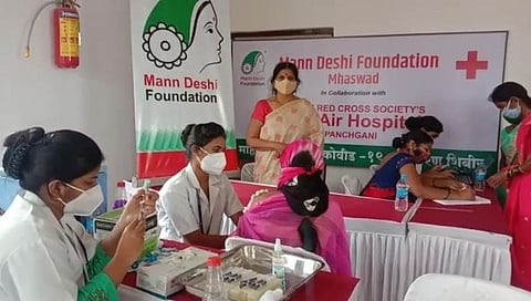 सातारा : सातारा Satara जिल्ह्यामध्ये लसीकरण Vaccination मोहिमेत माणदेशी फाउंडेशन ने पुढाकार घेतला आहे. जुलै महिन्यापासून सातारा जिल्ह्यामधील म्हसवड Mhaswad, वडूज, गोंदवले, दहिवडी ,लोणंद Lonand याठिकाणी आतापर्यंत १६ हजार महिलांचे लसीकरण पूर्ण झाले आहे. सातारा येथील स्वराज्य मंगल कार्यालयात सातारा शहर परिसरात महिलांच्या लसीकरण मोहिमेला जिल्हाधिकारी शेखर सिंह मान देशी फाउंडेशनच्या अध्यक्षा चेतना सिन्हा यांच्या उपस्थितीत सुरुवात झाली आहे.