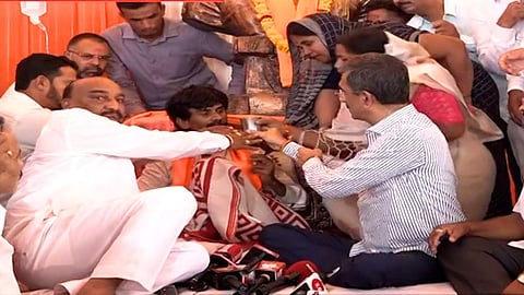 बुधवारी सरकारने नरमाईची भूमिका घेत तोडगा काढण्याचं आश्वासन दिलं होतं. त्या पार्श्वभूमीवर आज सरकारच्या शिष्टमंडळाने जरांगे पाटील यांची भेट घेतली. शंभूराजे देसाई यांनी जरांगेंची भेट घेऊन आंदोलन मागे घेण्याची विनंती केली. यावेळी नवनिर्वाचित खासदार संदिपान भुमरे देखील उपस्थित होते. यावेळी जरांगेंनी सगेसोयरेची एक महिन्यात अंमलबजावणी करण्याची अट घातली ती सरकारने मान्य केली आहे. आचारसंहीता असल्यामुळे हे काम थांबलं होतं. मात्र आता एक महिन्यात काम पूर्ण केलं जाईल, असं आश्वासन सरकारने दिलं आहे.