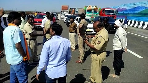 राज्यातील अनेक जिल्ह्यांमध्ये रास्ता रोको आंदोलन करण्यात येत आहे. या आंदोलनाचा सार्वजनिक वाहतुकीला मोठा फटका बसला आहे. दरम्यान, जालन्यात संतप्त मराठा आंदोलकांनी थेट मुंबई-नागपूर समृद्धी महामार्ग (Samruddhi mahamarg) अडवला आहे.