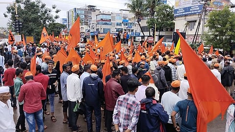 Sangli News : डॉ. बाबासाहेब आंबेडकर कमान पाडल्या प्रकरणी दाखल झालेले ॲट्रॉसिटी गुन्हे मागे घ्यावेत यासाठी आज (साेमवार) सांगली जिल्ह्यातील पंधरा गावांनी बंद पाळला. तसेच मागण्यांच्या पुर्तेतेसाठी मराठा समाजाने सांगली जिल्हाधिकारी कार्यालयावर धडक मोर्चा काढला. (Maharashtra News)