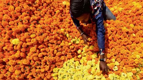 Marigold : दिवाळीनिमित्त लक्ष्मीपूजन व वाहनांच्या पूजेसाठी झेंडू फुलांची मागणी वाढली आहे. त्यासाठी झेंडू फुलांच्या दुकानांनी बाजारपेठा सजल्या आहेत. राज्यात सर्वत्र झालेला पाऊस आणि परतीचा पाऊस यामुळे काही ठिकाणी झेंडू (marigold) खराब झाला. बहुतांश ठिकाणी झेंडूला नेमका किती दर मिळताे याची शेतक-यांना चिंता हाेती. नंदूरबारला उत्तम दर मिळाल्याचे सांगितलं जात आहे तर परभणीत झेंडूला म्हणावा तसा दर मिळालेला नाही अशा भावना विक्रेत्यांच्या आहेत. (Diwali Latest Marathi News)