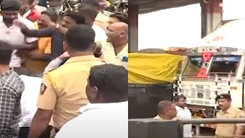 किणी टोल नाक्याची मुदत संपल्याचा दावा मनसेने (MNS) केला आहे. आज टोल नाक्यावर मनसेने आंदोलन केले. यावेळी मनसे आक्रमक झाल्याचे पाहायला मिळाले. आंदोलनकर्त्यांना पोलिसांनी ताब्यात घेतले आहे. मनसे कार्यकर्त्यांनी पंचगंगा नदीचे पाण्याने टोल नाक्याला अभिषेक घातला. या आंदोलनासाठी मनसेचे कार्यकर्ते मोठ्या संख्येने आले आहेत.