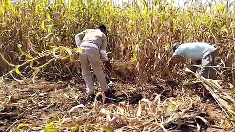 सातारा : सातारा (satara) जिल्ह्यातील खटाव येथील दहीवडी (dhaiwadi) आगारातील (msrtc) चालक वाहक व वाहतूक नियंत्रक कर्मचा-यांवर शेतात काम करण्यासाठी जाण्याची वेळ आली आहे. गेल्या तीन महिन्यांपासून संपामुळे पगार नाहीत. त्यामुळे एसटी कर्मचारी गावांमध्ये शेतकऱ्यांच्या बांधावर जाऊन आपल्या कुटुंबाच्या उदरनिर्वाहासाठी काम करत आहेत. (msrtc employee works in farms near dhaiwadi satara)