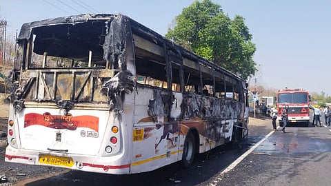 Nagpur-Amravati Highway Shivshahi Bus Fire : गेल्या काही दिवसांपासून शिवशाही बसला आग लागण्याच्या घटना घडत आहेत. काही दिवसांपूर्वी सांगली आणि नाशिकमध्ये धावत्या शिवशाही बसला अचानक आग लागल्याची घटना घडली होती. ही घटना ताजी असतानाच, आता नागपूरमध्ये धावत्या शिवसाही बसला भीषण आग लागली. या आगीत बस जळून खाक झाली. (Latest Marathi News)