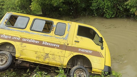 मिळालेली माहिती अशी, आज सकाळी सुमारे १८ विद्यार्थ्यांना घेऊन स्कूल व्हॅन शाळेच्या दिशेने जात होती. यावेळी मुसळधार पाऊस (Rain) सुरू असल्याने चालकाला रस्त्याचा अंदाज आला नाही. त्यामुळे स्कूल व्हॅन थेट नाल्यात जाऊन पडली आहे.
