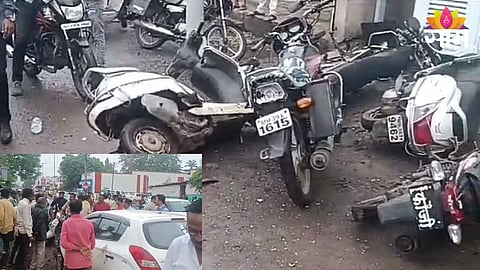 पुण्याचा हिट अँड रुंच्या घटनेनंतर नागपूर, भंडारा शहरात देखील हिट अँड रनचा थरार पाहण्यास मिळाला आहे. यानंतर नंदुरबार (Nandurbar) जिल्ह्यातील शहादा शहरात मोठा अपघात घडला आहे. शहरात गुरुवारी सायंकाळच्या सुमारास रस्त्यावर नागरिकांची चांगलीच वर्दळ असताना अचानक एक भरधाव वेगाने येणारी कारने रस्त्याच्या बाजूला उभ्या असलेल्या १५ ते २० मोटरसायकलींना जोरदार धडक (Accident) दिली आहे, यामुळे मोटरसायकलींचे मोठ्या प्रमाणात नुकसान झाले आहे. तसेच या गाडीचे देखील नुकसान झाले आहे. मोटारसायकलींना उडविल्यानंतर कर चालकाने पुढे जाऊन कार थांबविली होती.