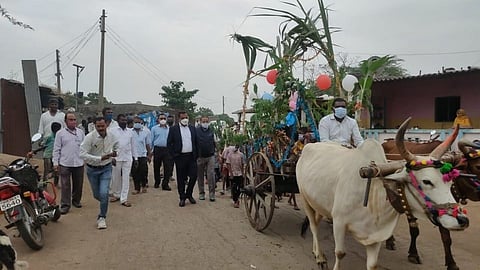 फुलांनी सजलेली बैलगाडी