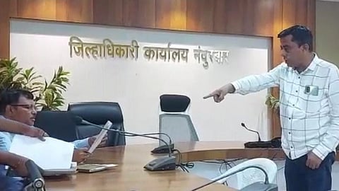 नंदुरबार : सामान्य जनतेच्या शासकीय कार्यलयासंबंधी असलेल्या तक्रारी सोडवण्यासाठी तालुका आणि जिल्हास्तरावर राज्यपाल यांच्या आदेशानुसार लोकशाही दिनाचे आयोजन करण्यात येते. लोकशाही दिनामध्ये शासकीय अधिकाऱ्यांना उपस्थित राहण्याचे बंधनकारक असतांना अधिकारी नेहमीच राज्यपालांच्या आदेशाला केराची टोपली दाखवत लोकशाही दिनाकडे पाठ फिरवत असल्याचे चित्र नंदुरबार (Nandurbar) येथील लोकशाही दिनास पहावयास मिळाले आहे. नवापूर येथील सामाजिक कार्यकर्ता मंगेश येवले यांनी खुर्ची वर न बसता उभे राहून आपली तक्रार मांडली आणि अनुपस्थित असलेल्या अधिकार्याचा निषेध केला आहे. (nandurbar news Ignoring the complainant problem Protest of officials)