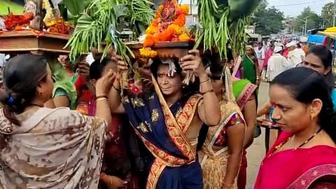 शनिवारी कानबाईंच्या मुखवट्यांचे वाजत गाजत (Nandurbar News) आगमण झाल्यानंतर रविवारी विधीवत पुजनाने त्यांच्या स्थापना करण्यात आले होते. आज त्यांचे विसर्जन होत असुन यासाठी ज्या घरात कानबाई स्थापन झाल्या आहेत. त्या घरातील अबाल वृद्ध तल्लीन होवुन पारंपारीक ठेका धरतांना दिसुन आले. फुगड्यांसह महिलांनी नृत्यावर धरलेला ठेका कानबाईच्या उत्सव द्विगुणीत करतांना ठरत आहे. खानदेशवासीयांचा महत्त्वपूर्ण सण कानबाईच्या उत्सवासाठी सर्वच कुटुंबीय एकत्र येत असतात नंदुरबार जिल्ह्यातही भक्तांनी मोठ्या उत्साहात साजरा केला.