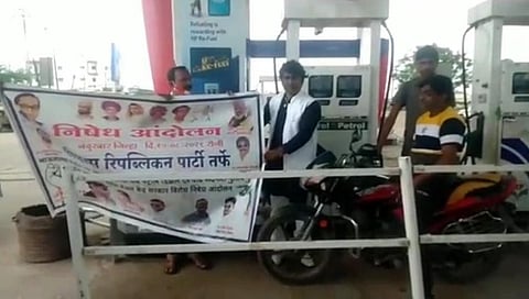 नंदुरबार : पेट्रोल– डिझेलचे दर रोजच वाढत आहे. राज्यात हे दर अधिक असून, पेट्रोलच्या दरात आठ रूपयांची तफावत असल्याने वाहन धारक महाराष्ट्राची सीमा ओलांडून गुजरातमध्ये पेट्रोल भरण्यासाठी जात आहे. दोन राज्यातील दरामधील या तफावतीच्या विरोधात पीपल रिपब्लिकन पार्टीच्यावतीने निषेध आंदोलन करण्यात आले. (nandurbar-news-petrol-price-hike-republic-party-Go-to-Gujarat-to-fill-up-petrol)