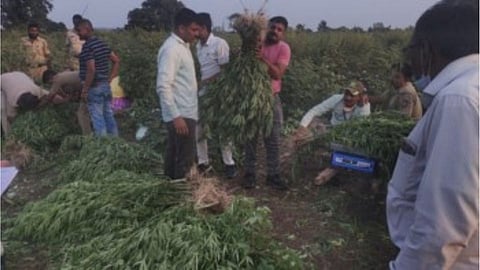 शहादा (नंदुरबार) : मलगाव (ता. शहादा) येथे कपाशीच्या शेतात बेकायदेशीररित्या लागवड केलेल्या झाडांच्या शेतीवर पोलिसांनी कारवाई केली. त्यात सुमारे ११ लाख ९० हजार किंमतीचे १७० किलो वजनाची २५० गांजाची झाडे जप्त करण्यात आली आहेत. या घटनेतील आरोपी फरार झाला आहे. दरम्यान पोलिसांनी अशा घटनांमधील मुख्य सूत्रधारावर कारवाई करण्याची गरज आहे. (nandurbar-news-shahada-Cannabis-cultivation-in-cotton-fields-12-lakh-trees-seized)