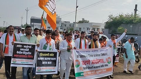 नंदुरबार : दंगली घडवून आणल्याच्या विरोधात महाविकास आघाडी सरकारचा निषेध करण्यासाठी जिल्हाधिकारी कार्यालयावर निघालेल्या भाजपच्या शेकडो कार्यकर्त्यांना पोलिसांनी अटक केली. (nandurbar-news-The-agitation-called-by-BJP-was-suppressed-by-the-police)