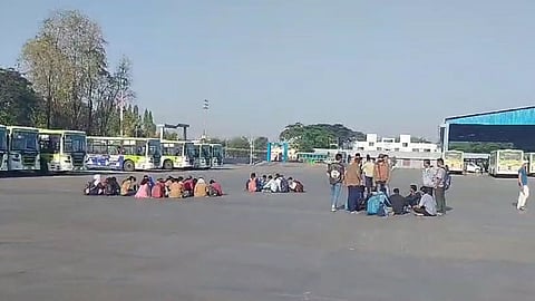 दाेन महिन्यांचे वेतन न मिळाल्याने नाशिक शहरातील सिटी लिंक बस सेवेच्या (Nashik City Bus Service) कर्मचा-यांनी आज (गुरुवार) पुन्हा एकदा काम बंद आंदाेलन छेडले आहे. यामुळे सिटी लिंकच्या तपोवन बस डेपोतील (tapovan bus depot) बस सेवा ठप्प झाल्याचे चित्र सकाळ सकाळी पाहयला मिळत आहे. (Maharashtra News)