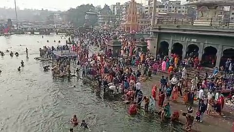 कोरोना (Corona) प्रादुर्भावाच्या पार्श्वभूमीवर नाशिकमध्ये एकीकडे जमावबंदी लागू आहे. मात्र, दुसरीकडे रामकुंडावर भाविकांची मोठी गर्दी पाहायला मिळतेय. मकर संक्रांतीच्या पर्वकाळात गोदावरी, वरुणा आणि अरुणा असा तीन नद्यांचा त्रिवेणी संगम असलेल्या रामकुंडावर स्नानाला विशेष असं महत्व आहे.