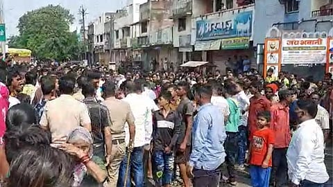 नाशिक Crime News : नाशिक (nashik) शहरात रात्री राजेश शिंदे या भाजी व्यापाऱ्याचा खून झाला. त्या घटनेच्या निषेधार्थ शिंदेचे नातेवाईक आणी स्थानिक नागरिक मोठ्या संख्येने आज (बुधवार) पेठरोडवरील भराडवाडी परिसरात जमा झाले. त्यांनी शिंदे यांचा मृतदेह रस्त्यावर ठेवत रास्ता रोको केला. यामुळे काही काळ भराडवाडी परिसरात तणाव निर्माण झाला.