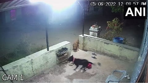 नाशिक : नाशिक (Nashik) शहरातील एका वस्तीमधून एक धक्कादायक घटना उघडकीस आली. मध्यरात्री वस्तीत शिरलेल्या एका बिबट्याने कुत्र्यावर अचानक हल्ला (Leopard Attack) चढवला. ही थरारक घटना सीसीटीव्हीत कैद झाली असून या घटनेनंतर परिसरात मोठी खळबळ उडाली. एएनआय या वृत्तसंस्थेनं या घटनेचा व्हिडिओ ट्विट केला असून आतापर्यंत 20 हजारांहून अधिक लोकांना हा व्हिडिओ बघितला आहे. (Nashik Leopard Attack Dog Viral Video)