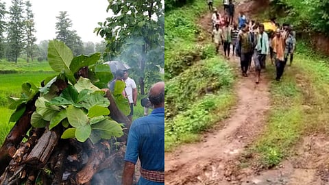 प्रत्यक्ष अडचणींचा सामना करतेवेळी मयतांच्या नातेवाईकांना खुप हालअपेष्टा सहन कराव्या लागल्या. स्मशानात भूमीपर्यंत (cemetery) जाण्यासाठी रस्ता नसल्याने खांदेकरी यांना प्रेत घेऊन चालता येत नव्हते. चिखलातून, भातशेती मधून, बांधावरुन प्रेत घेऊन जावे लागले. कसेबसे हालअपेष्टा सहन करीत स्मशानात पोहचल्यावर तेथे उघड्यावर अंतिम संस्कार करावे लागत असल्यानं त्यातच पाऊस पण असल्यानं मीठ तसेच पेट्रोल अथवा डिझेलचा वापर करुनही प्रेत पेटत नव्हते. अखेर सागवान पानाची पलान शिवून चितेवर ठेवत अग्नी डाग देण्यात आला. त्यामुळे चिता पेटविण्यासाठी सागवान पानांचा आधार घ्यावा लागला. हेच आदिवासींच्या (Tribal) नशीबी वाईट दुर्दैव आहे.