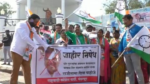 मंत्री चंद्रकांत पाटील यांनी महापुरुष विषयी केलेल्या वक्तव्याचे राज्यभरात तीव्र पडसाद उमटू लागले आहेत. आज पंढरपुरात ही राष्ट्रवादी काँग्रेसच्या वतीने मंत्री चंद्रकांत पाटील यांच्या वक्तव्याचा निषेध करत आंदोलन केले. येथील डाॅ.बाबासाहेब आंबेडकर पुतळ्याजवळ राष्ट्रवादीचे नेते श्रीकांत शिंदे व संदीप मांडवे यांच्या नेतृत्वाखाली कार्यकर्त्यांनी आंदोलन केले.