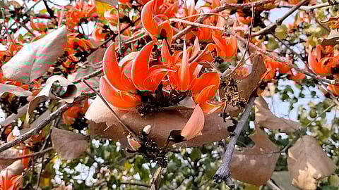 पळस वृक्षासह (butea monosperma flower) अनेक वेलींना फुलोरा आल्याने आल्हादायक वातावरण निर्माण झालेले आहे. सातपुड्याच्या पायथ्याशी असलेल्या परिसरात निसर्गाची रंगीबिरंगी किमया दिसून येत आहे. माग महिना संपून फाल्गुन महिन्याला सुरुवात झालेली आहे.