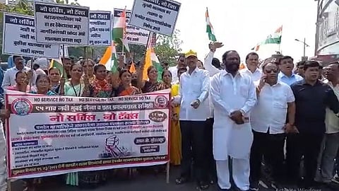नवी मुंबई : पनवेल (panvel) महापालिकेने गेल्या पाच वर्षात कोणत्याही प्रकारची विकासकामे न करता दुपटीपेक्षा अधिक मालमत्ता कराची नोटीस पाठविल्याने ग्रामस्थ संतप्त झालेत. सेवा नाही तर कर नाही अशी भूमिका घेत ग्रामस्थांनी वाढीव मालमत्ता कर रद्द करण्याच्या मागणीसाठी आज (शुक्रवार) पनवेल महापालिकेवर (panvel muncipal corporation) मोर्चा काढला. (navi mumbai latest marathi news)