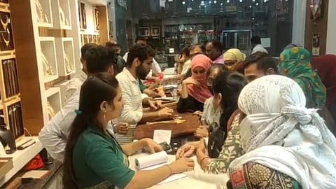 परभणीत यंदा वाहन, कपडे इतर खरेदी कमी झाल्याचे व्यावसायिकांनी सांगितलं. मात्र सोनं खरेदीला झुंबड उडालेली आहे. परभणी शहरातील सर्वच सराफा दुकानांमध्ये मोठ्या प्रमाणावर परभणीकरांनी सोनं खरेदीसाठी गर्दी केलेली आहे. (Maharashtra News)