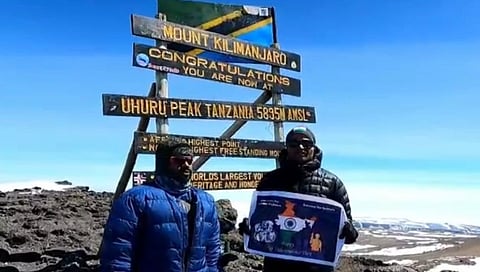 सांगली - सांगली जिल्ह्याचे सुपुत्र आणि नवी मुंबई पोलिस दलातील सहाय्यक पोलीस निरीक्षक संभाजी गुरव यांनी तीन महिन्यात आशिया खंडातील तीन जागतिक कीर्तीचे शिखर सर केले आहेत. 15 ऑगस्टच्या निमित्ताने युरोप खंडातील किलीमांजारो हा शिखर सर करत भारताचा तिरंगा फडकवला आहे. सलग तीन उंच शिखर सर करणारे ते भारतीय पोलिस दलातील एकमेव आहेत. (Police officer Sambhaji Gurav climbed the highest peak in Europe, Kilimanjaro)