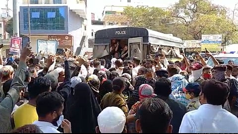 साेलापूर : कर्नाटकात महाविद्यालयांमध्ये हिजाब घालण्यावर बंदी घातल्याने त्याचे तीव्र पडसाद महाराष्ट्र राज्यात पहायला मिळतं आहेत. सोलापूरातील एमआयएमने हिजाबच्या (hijab) समर्थनार्थ जिल्हाधिकारी कार्यालयासमाेर ((mim supports wearing hijab) आंदोलन केले. (hijab latest marathi news)