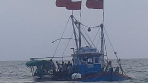 या नौकेतील खलाशांना मच्छिमारांनी दुसर्या बोटीच्या सहाय्याने सुखरूप समुद्राच्या बाहेर काढले मात्र नौकेचे लाखो रूपयांचे नुकसान झाले.