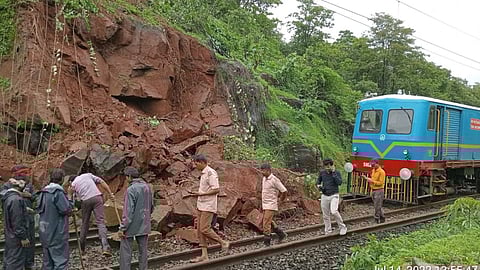 रत्नागिरी / सिंधुदुर्ग : काेकणात (kokan) गेले दाेन दिवस झाले पावसाचा (rain) जाेर वाढला आहे. यामुळे घाट रस्त्यांवर दरड (landslide) काेसळण्याच्या घटना घडत आहे. यामुळे वाहतुक खाेळंबत आहे. दरम्यान पावसाचा फटका काेकण रेल्वे (Konkan Railway) प्रशासनास देखील आज (गुरुवार) बसला आहे. (Konkan Railway Latest Marathi News)