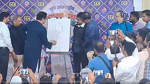 Raj Thackeray News : जागतिक व्यंगचित्रकार दिनानिमित्त आज (शुक्रवार) पुण्यात आयाेजिलेल्या व्यंगचित्र महोत्सवाचे उद्घाटन मनसे अध्यक्ष राज ठाकरे (Raj Thackeray) यांच्या हस्ते झाले. त्यावेळी राज ठाकरे यांनी व्यंगचित्रांची पाहणी करुन चित्रकरांचे काैतुक केले. यावेळी उपस्थितांनी ठाकरेंना व्यंगचित्र काढण्याचा आग्रह केला. त्यानंतर ठाकरेंनी पेन्सिल हाती घेतली. यावेळी राज ठाकरे काय व्यंगचित्र काढणार याची उत्सुकता सर्वांनाच लागली. (Breaking Marathi News)