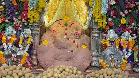 Ranjangaon Mahaganpati: ग्रीष्मातील वाढती उष्णता लक्षात घेता १ मे रोजी रांजणगाव (ता. शिरूर) येथील महागणपतीला पारंपारिक पद्धतीने चंदन उटीचा लेप लावण्यात आला. महाराष्ट्र दिनाचे औचित्य साधून महागणपती मंदिरात विविध धार्मिक उपक्रमांचे आयोजन केले होते. यावेळी महागणपतीला एक हजार एक चिकूंचा नैवेद्य दाखविण्यात आला.