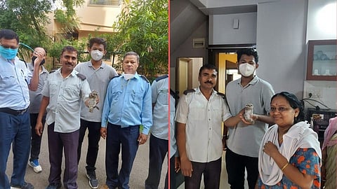 नाशिकच्या (Nashik) रविशंकर मार्गावरील हरीस्मृती हौसिंग सोसायटीतील लोकांनी एका दुर्मिळ प्रजातीच्या घुबडाला जीवदान दिल्याची माहिती समोर आली आहे. शिवम तांबे या तरुणाने या दुर्मिळ प्रजातीच्या घुबडाचे (Rare species of owl) प्राण वाचवले आहेत. याबाबत शिवमने स्वतः माहिती दिली. (Rare species of owl gets life in Nashik)