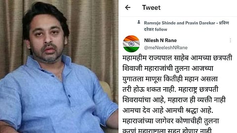 रत्नागिरी : महाराष्ट्र छत्रपती शिवरायांचा आहे, महाराज ही व्यक्ती नाही आमचा देव आहे आमची श्रद्धा आहे. महाराजांच्या जागेवर कोणाचीही तुलना करणं महाराष्ट्राला सहन होणार नाही; अश शब्दात माजी खासदार निलेश राणे (Nilesh Rane) यांच्याकडून राज्यपाल भगतसिंग कोश्यारी यांच्या वक्तव्यावर व्टीट करत निशाणा साधला आहे. (Tajya Batmya)