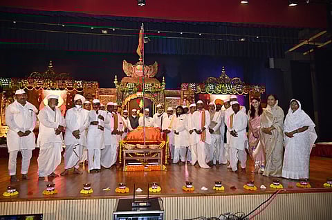 तब्बल १८ टन वजन असलेल्या खांबावर ९० किलो वजनाचा आणि ९६x६४ फूट अशा भव्य-दिव्य आकाराचा हा स्वराज्य ध्वज आकाशाला गवसणी घालणाऱ्या ७४ मीटर उंचीवर डौलाने फडकणार आहे. या ध्वजाचं पूजन संतपीठाच्या हस्ते करण्यात आलं आहे. आगामी दोन महिन्यात देशभरातील प्रमुख ७४ अध्यात्मिक, धार्मिक स्थळी, संतपीठं आणि छत्रपती शिवाजी महाराजांच्या पदस्पर्शाने पावन झालेल्यांच्या ठिकाणी, तसंच श्रीराम मंदिर (अयोध्या), मथुरा, बोधगया (बिहार), केदारनाथ (उत्तराखंड), शाहू-फुले-आंबेडकरांच्या स्मारकाच्या ठिकाणी, वर्ध्यात महात्मा गांधीजींचा सेवाग्राम आश्रम आदी ठिकाणी नेऊन ध्वजाचे पूजन केले जाईल. पंढरीत पूजन केल्यानंतर खर्ड्याच्या भुईकोट किल्ल्यासमोर या स्वराज्य ध्वजाची मान्यवरांच्या उपस्थितीत प्रतिष्ठापना केली जाईल. दि. १५ ऑक्टोबर रोजी हा कार्यक्रम नियोजित केला आहे.