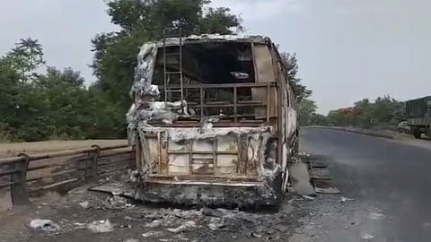 नाशिक : औरंगाबादहून नाशिकच्या दिशेने (Nashik Aurangabad Highway) निघालेल्या शिवशाही बसला अचानक आग (Shivshahi Bus Fire) लागल्याची घटना घडली आहे. माहितीनुसार निफाड तालुक्यातील बोकडदरे परिसरात ही घटना घडली आहे. आगीत शिवशाही बस (burning-bus) पूर्णपणे जळून खाक झाली आहे. सुदैवाने या कुठलीही जीवितहानी झाली नाही. बसने पेट घेतल्याचे लक्षात येताच चालक आणि वाहकाने प्रसंगावधान राखत बसमधून उडी घेतल्यानं जीवितहानी टळली.