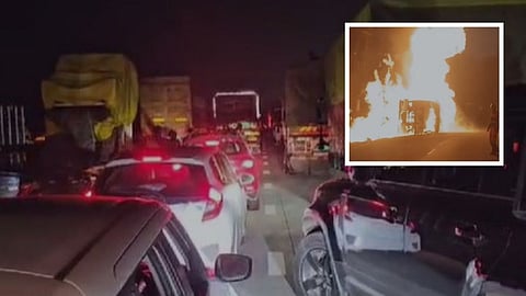 मात्र केमिकलमुळे उसळलेली आग शर्थीचे प्रयत्न करूनही आटोक्यात येत नव्हती. अखेर सहा तासांच्या प्रयत्नांनंतर रात्री दोन वाजेच्या दरम्यान आगीवर नियंत्रण मिळवण्यात यश आलंय. या आगीत कुठलीही जीवितहानी झाली नसली तरी संबंधित वाहन जळून खाक झालंय. दरम्यान मोठ्या प्रमाणात आग लागल्याने समृध्दी महामार्गावरील वाहतूक थांबवण्यात आली होती. त्यामुळे इतर वाहन चालकांना मोठा मनस्ताप सहन करावा लागला. आगीवर नियंत्रण मिळवल्यानंतर वाहतूक सुरळीत झाली. पण आग नेमकी कशामुळे लागली होती? हे मात्र अद्याप स्पष्ट होऊ शकले नाही.