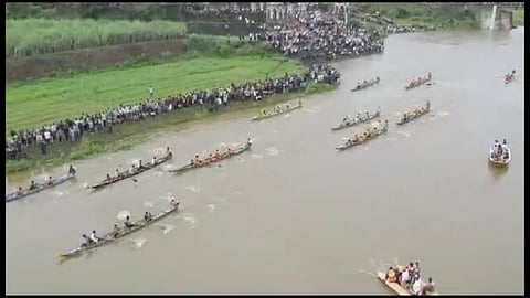 Sangli News Today: सांगलीच्या मिरजेतील कृष्णा नदीत भव्य होडयांच्या शर्यती पार पडल्या आहेत. कृष्णा नदीमध्ये पार पडलेल्या या थरारक होडी शर्यतीमध्ये मिरज तालुक्यातल्या कवठेपिरान येथील सप्तर्षी बोट क्लबने प्रथम क्रमांक पटकावला आहे. तर या होड्याच्या शर्यती पाहण्यासाठी नागरिकांनी कृष्णा काठी एकच गर्दी केली होती. (Latest Marathi News)