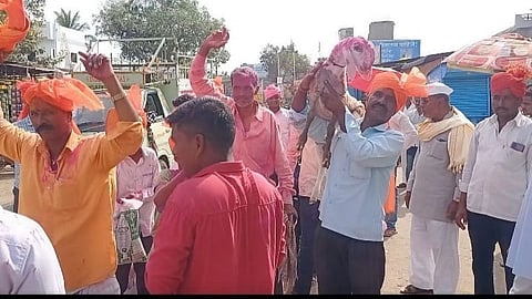 सांगली - एका मेंढीची किंमत सव्वा दोन लाखाहून अधिक मिळू शकते हे कुणालाही पटणार नाही. पण सांगलीच्या (Sangli) माडग्याळ बझारात एक मेंढी दोन लाख 33 हजाराला विकली गेली आहे. शेतकऱ्याच्या अशा तब्बल 6 मेंढ्या विकल्या गेल्या आहेत. त्यामुळे आनंदित झालेल्या शेतकऱ्याने या मेंढ्यांची हलगीच्या निनादात भव्य मिरवणूक काढत आनंद साजरा केला. जत तालुक्यातील माडग्याळ येथील मय्याप्पा चौगुले या शेतकऱ्याची (Farmer) सहा मेंढ्यांची तब्बल 14 लाख रुपयांना विक्री करण्यात आली आहे. (Sangli Latest News)