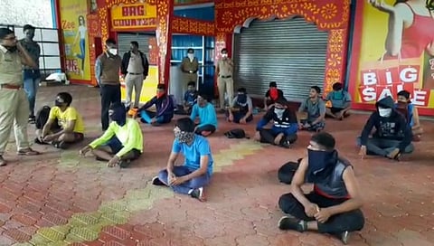 आज बुधवार सकाळपासून त्याची अंमलबजावणीस प्रारंभ झाला आहे. एरव्ही थाेडी फार वर्दळ असलेल्या शहरातील बाजारपेठेत शुकशुकाट आहे. पहाटेच्या वेळीस आणि सकाळ व्यायामासाठी तसेच चालण्यासाठी जाणा-या युवकांची पाेलिसांनी धरपकड केली. सर्व युवकांना एकत्रित आणून पाच दिवस कडक निर्बंध लागू केल्याचे सांगत नियमांचा भंग केल्यास कारवाई करु अशी सक्त ताकीद दिली. यावेळी सहायक पोलिस निरीक्षक (सांगली शहर) गजानन कांबळे यांनी अनावश्यक कारणासाठी नागरिकांनी घरा बाहेर येऊ नये असे आवाहन केेले.