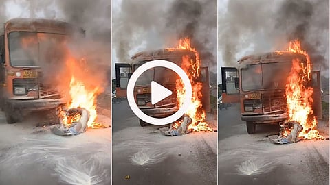 बस आणि दुचाकीची जबर धडक बसली होती. मात्र यावेळी दुचाकीस्वार बसखाली अडकून पडला. कोणी मदतीला धावून येणार त्याआधीच बस आणि दुचाकीने पेट घेतला. दुचाकीस्वाराला बाहेरही पडता आलं नाही. क्षणार्धात दुचाकी आणि दुचाकीस्वार जळून खाक झाले. त्यामुळे हळहळ व्यक्त होत आहे.